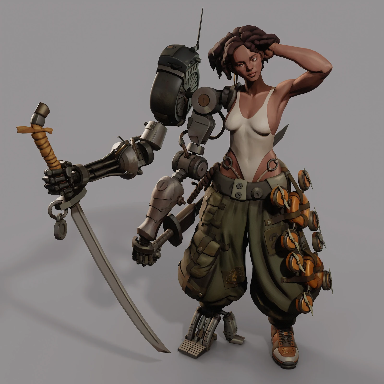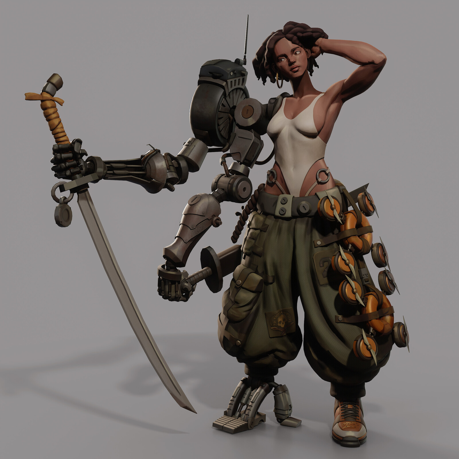 I love the original art by Seungho Lee and wanted to see how I could faithfully translate it into 3D. I took this project as an opportunity to learn about hand-painted texturing, something I've done sparingly in the past, and the way to use normal maps to try and give it more of a painterly look. I do think I could've gone all out in making it look even closer to the concept art, but for this project, I wanted to create a game-ready character using the concept art as a base for the style of this hypothetical game character. I hope you like it!
